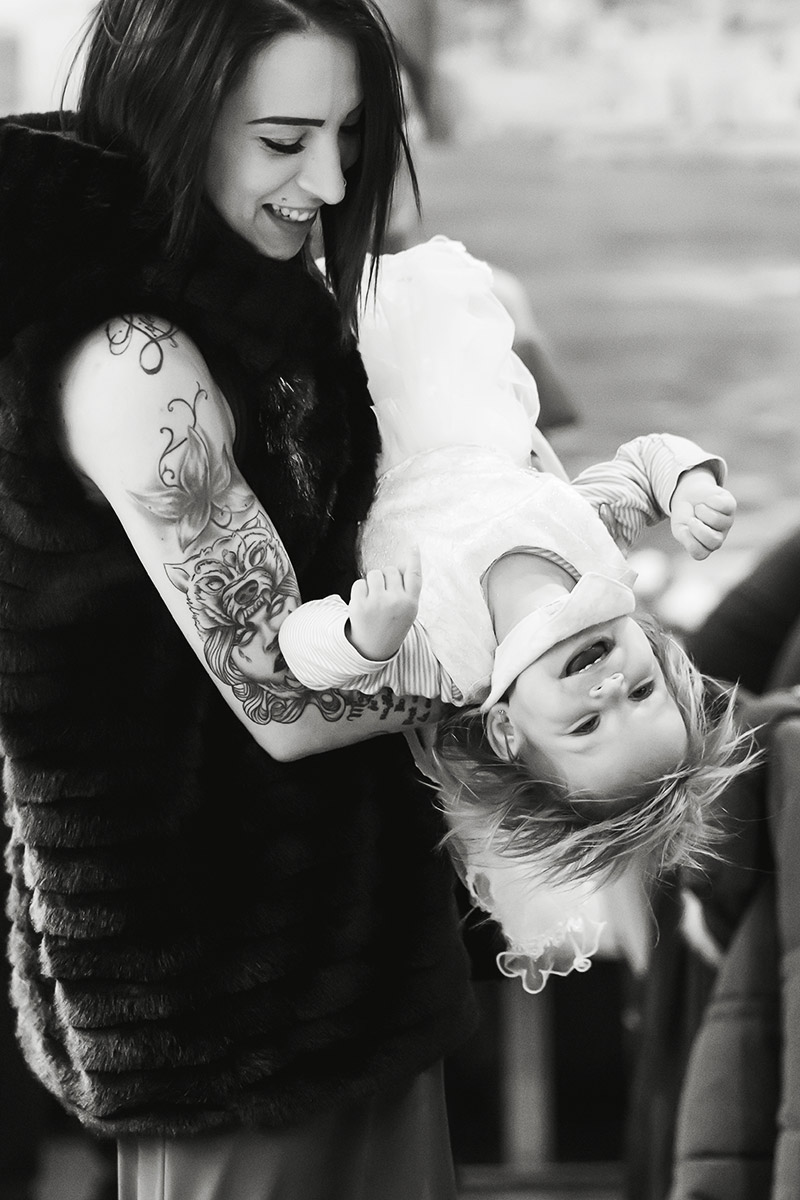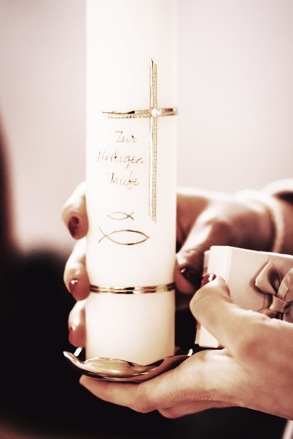 Hier entstehen die ersten Aufnahmen vom Kind, den Angehörigen, der Umgebung (Kirche etc. ...) und erste Detailaufnahmen (Taufkerze, Kleidchen oder Anzug des Kindes, Schühchen etc.).