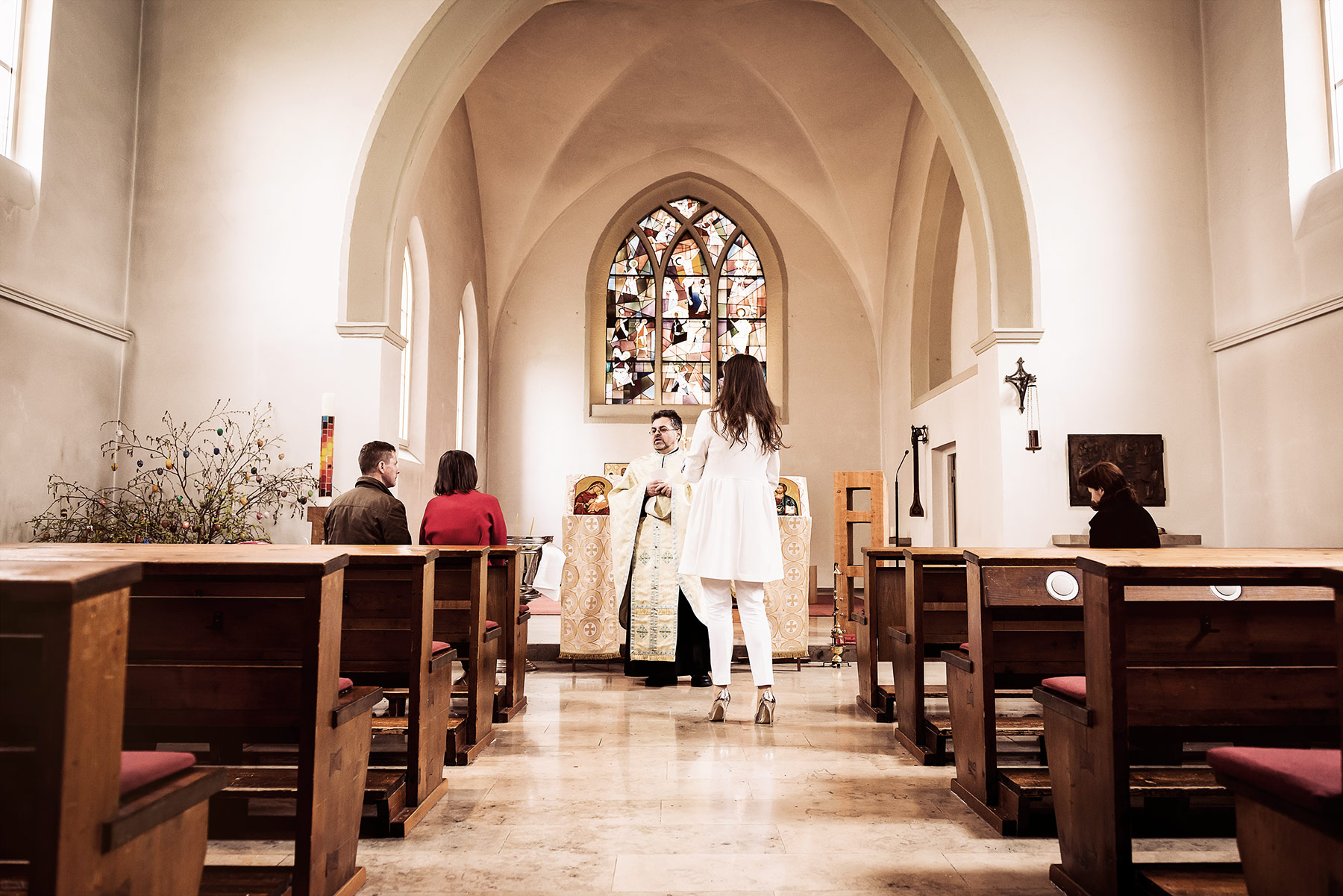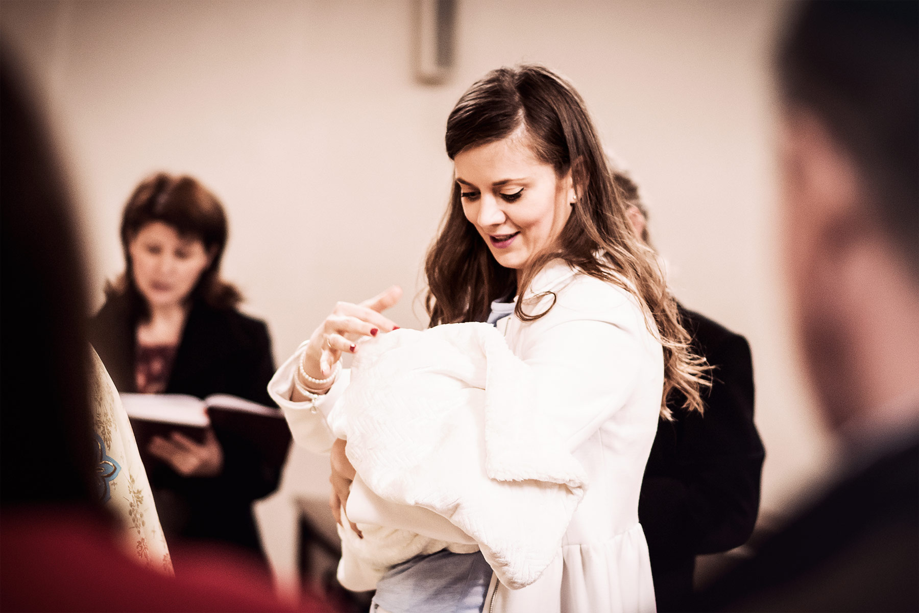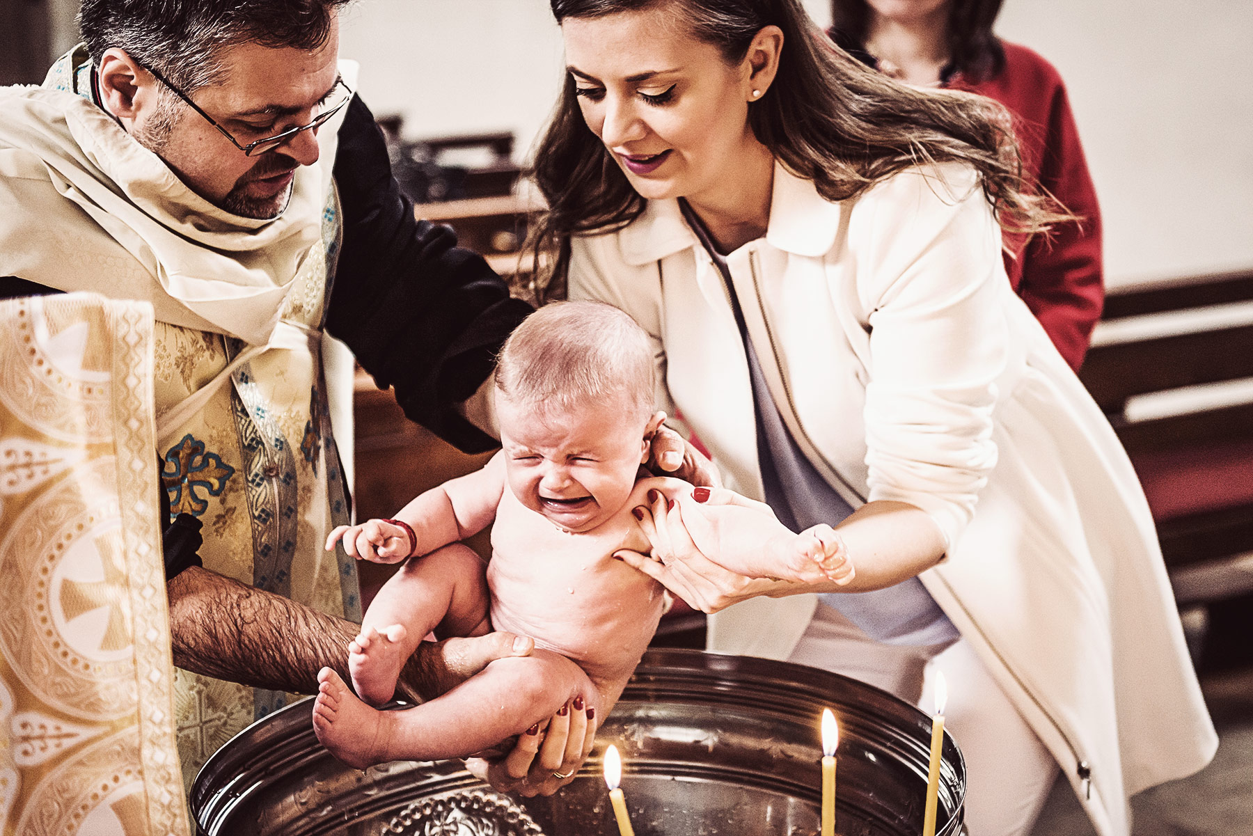 Der ereignisreiche Teil für die Eltern und den Täufling / die Täuflinge ist die eigentliche Taufzeremonie. Hier entstehen die wichtigsten Bilder, wie die Segnung, die eigentliche Taufe des Kindes, Detailaufnahmen und Bilder von den Gästen und dem Pfarrer selbst.