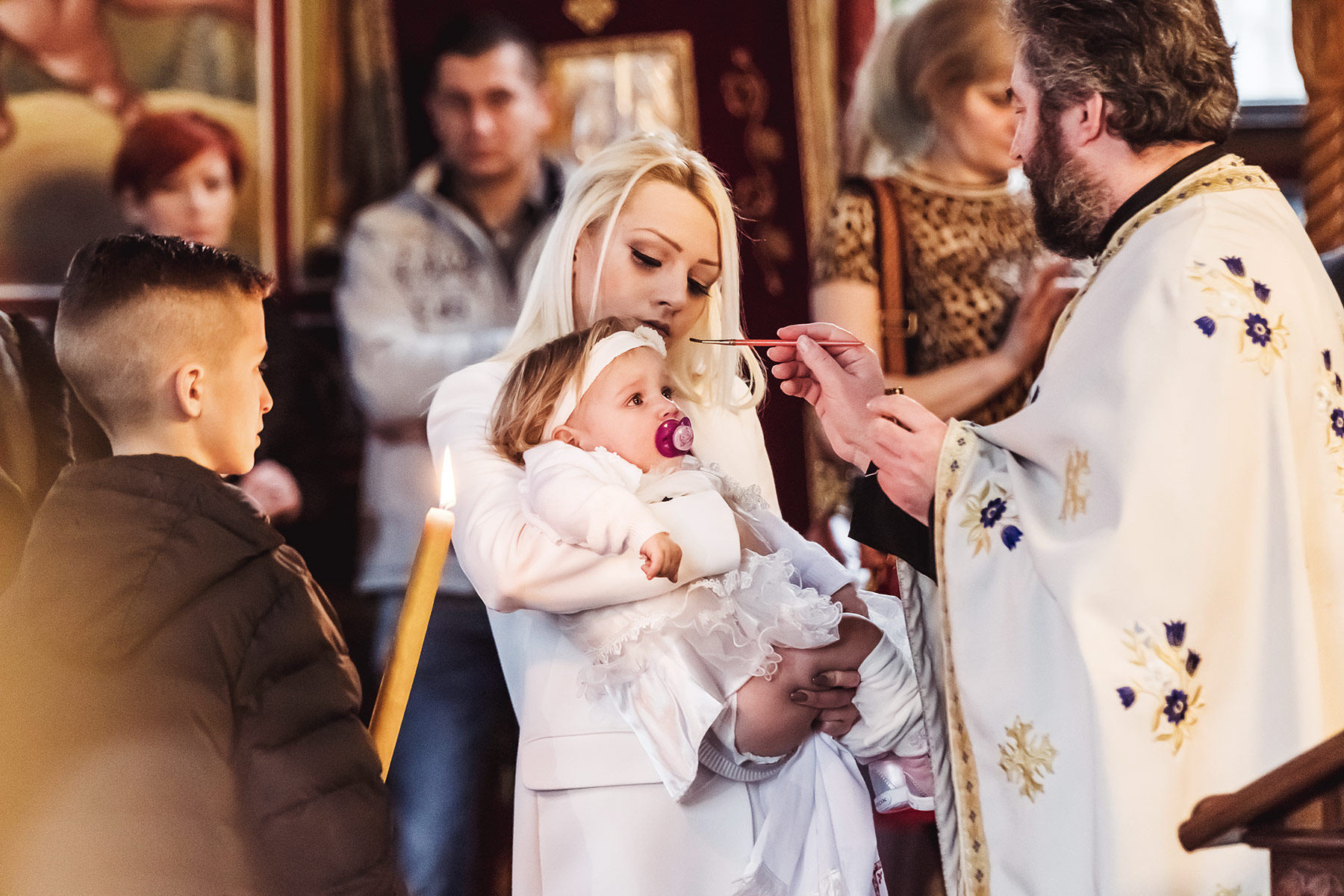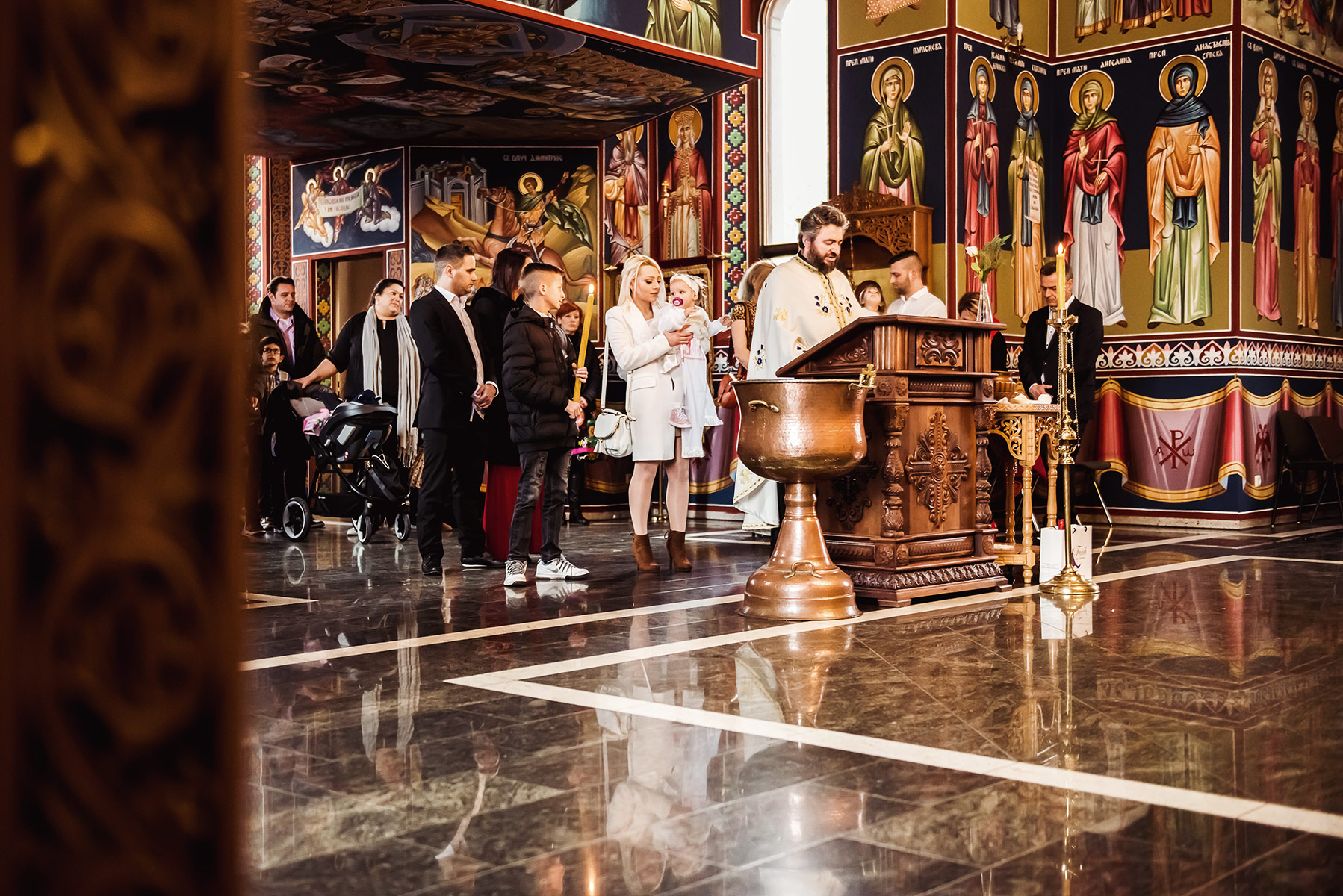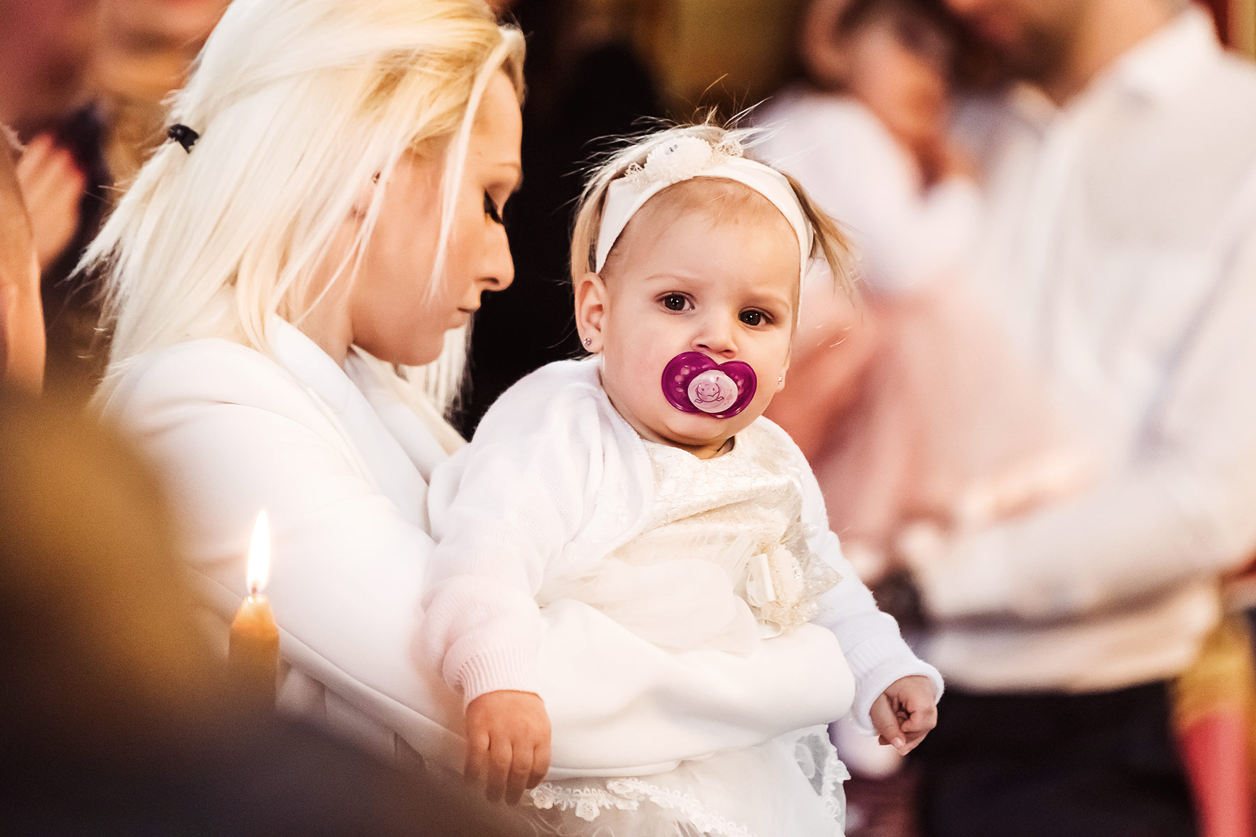 Der ereignisreiche Teil für die Eltern und den Täufling / die Täuflinge ist die eigentliche Taufzeremonie. Hier entstehen die wichtigsten Bilder, wie die Segnung, die eigentliche Taufe des Kindes, Detailaufnahmen und Bilder von den Gästen und dem Pfarrer selbst.